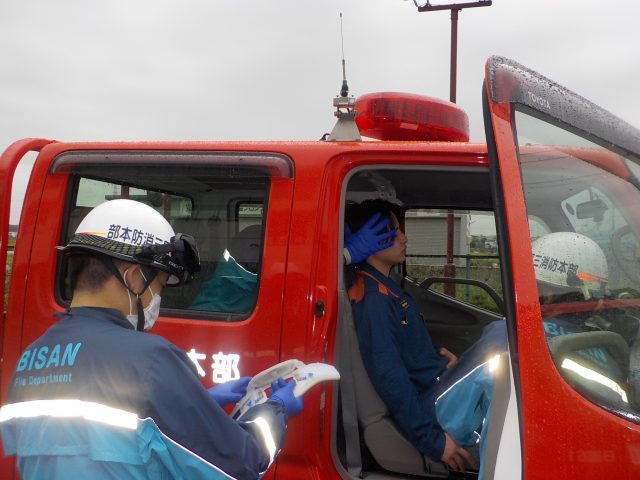 今回の訓練では、事故状況や傷病者の人数をいち早く把握し、現場活動がスムーズに行えるように救急隊と消防隊の連携を再確認しました。
