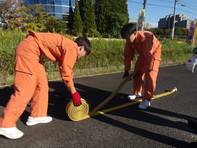みよし市立南中学校の生徒3名が職場体験に来ました。重さ約10㎏の空気呼吸器を背負っての救助訓練、消防隊が使うホースの延長訓練、胸骨圧迫とAEDを使った救急訓練など、署員が日頃行っている訓練を3日間体験しました。今回の体験を通して、消防の仕事に興味を持ってもらえたら嬉しく思います。
