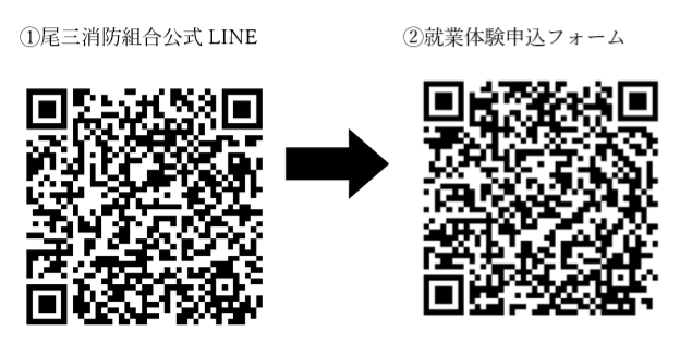 ①の二次元コードから公式LINEを友達追加した後、②の二次元コードから就業体験の申込をしてください。 |