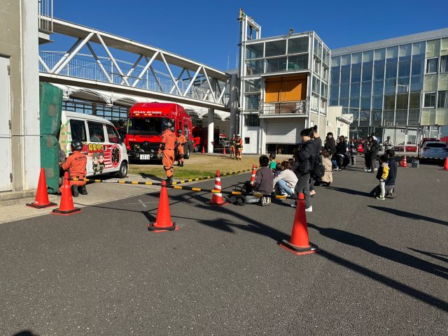 防火思想の普及及び消防への理解を深めていただくことを目的として、訓練見学会・災害対応ミニ講座を開催しました。「訓練見学会」では、車両と壁の間に挟まれた要救助者を救出する救助活動を見学していただきました。「災害対応ミニ講座」では、Live119のデモンストレーションを見ていただき、携帯電話に映された現場の状況や口頭指導の映像が流れることに多くの見学者が驚いていました。また、「煙体験ハウスを使用した避難体験」では、出口まで避難することの難しさを体験し、火災が発生した際、早急に避難することの大切さを感じていただけたかと思います。今後も随時、開催していく予定ですので、是非、ご参加をお待ちしております。