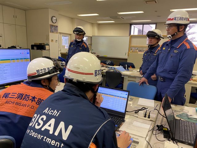 この訓練は、尾三消防組合管内において夜間に大規模地震災害が発生したことを想定し、「尾三消防本部消防災害対策本部初動対応マニュアル」に基づく消防署の活動要領を確認するとともに、災害対応能力の向上を図ることを目的に実施しました。職員はそれぞれの役割を適切に遂行し、定められた手順に沿って活動することができました。一方で課題も明らかになったため、速やかに改善策を講じて訓練を重ね、大規模災害に備えていきます。